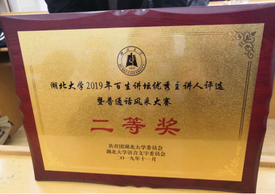 在决赛上,虽遭遇些许意外,部分背景音乐受损未播放出来,但他们沉着镇静、不慌不乱,继续进行未完成的朗诵,最终凭借出色的表现取得比赛二等奖。