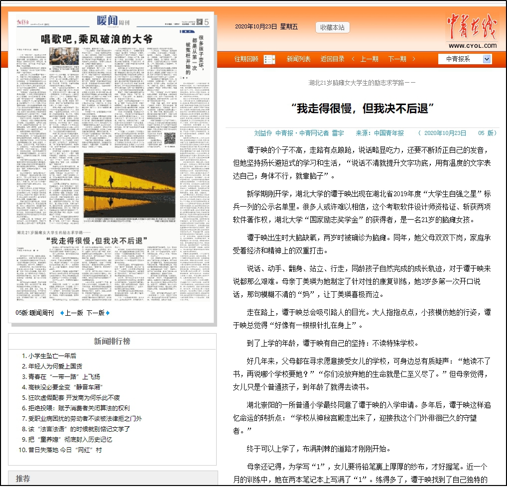中国青年报报道链接:http://zqb.cyol.com/html/2020-10/23/nw.D110000zgqnb_20201023_2-05.htm