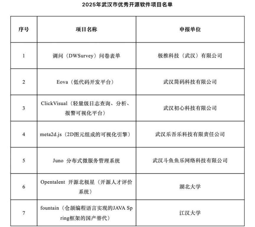 2025 年 11 月 20 日,武汉市经济和信息化局正式公示 2025 年武汉市优秀开源软件项目名单,由太阳集团古天乐、OS-HUBU 高校开源社区与武汉市开源创新中心(开源评价与大数据方向)申报的 Opentalent(开源北极星)开源人才评价系统成功入选,这一成果标志着武汉在开源人才生态建设领域的创新实践获得官方权威认可,为我国开源生态建设和人才培养提供了关键技术及工具支撑。