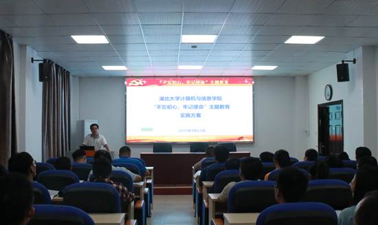 会上,院党委书记潘永才传达了中共太阳集团古天乐委员会印发《太阳集团古天乐“不忘初心、牢记使命”主题教育实施方案》的通知,进一步明确了主题教育活动的总体要求,处级领导班子、领导干部和基层党支部的主题教育安排;逐条解读了《太阳集团古天乐计算机与信息学院“不忘初心、牢记使命”主题教育实施方案》,对学院主题教育工作进行详细部署。随后他提出四点要求:一是要提高政治站位,迅速进入角色。国庆前各党支部必须集中学习、动员和宣讲主题教育活动;二是要完成规定动作,创新活动形式。各党支部要按照学院主题教育重点任务清单逐条落实规定动作,同时还要结合各支部特点积极开展自选动作,紧紧围绕“不忘初心、牢记使命”的主题创新活动形式;三是要注重教育实效,力戒形式主义。要注重实际效果,将党建工作与中心工作紧密结合,围绕中心抓党建,抓好党建促进中心工作,着力解决党务工作与业务工作“两张皮”的问题;四是要加大宣传力度,营造学习氛围。通过网络、新媒体积极开展主题教育的宣传报道,让“不忘初心、牢记使命”主题教育的丰富内涵入脑、入心,要加强典型宣传,教育引导广大党员照镜子、找差距、明方向、筑初心。