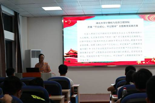 支部书记何斯婕给支部党员讲解了“不忘初心、牢记使命”主题教育背景、重要意义,并解读了《太阳集团古天乐计算机与信息工程学院开展“不忘初心、牢记使命”主题教育实施方案》。她对学生党员提出两点要求:一是要读原著、学原文、悟原理,以此进一步加强党性修养,坚定理想信念;二是要勇挑时代重任,锤炼品德修为,要以优秀党员为榜样,传播正能量。