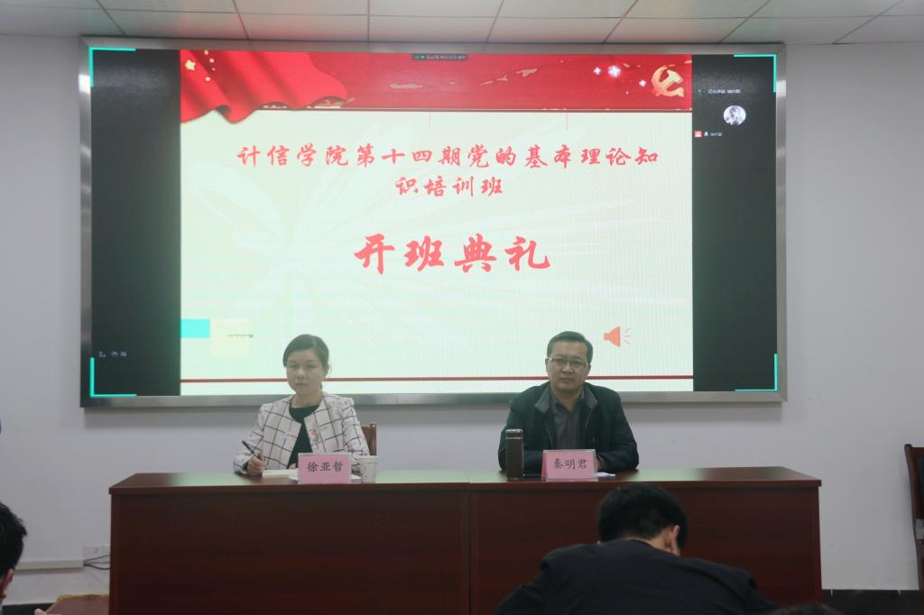4月14日,学院第十四期党的基本理论知识培训班开班典礼在计信学院102会议室顺利召开。学院党委书记、党校校长秦明君,院党委副书记徐亚哲,院组织员田仕兵出席开班典礼,学院83名发展对象参加了本次培训。
