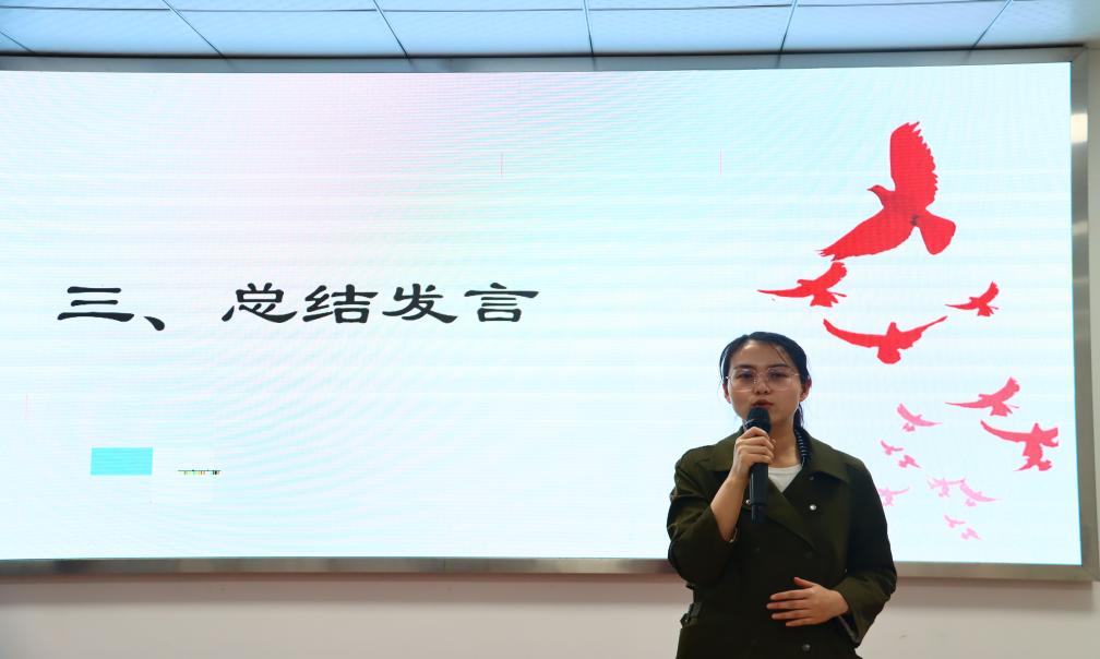 赛中,曹郁婕首先以“以史为灯,照亮前路”为主题从回望历史,铸就灯火,照亮前方三个方面介绍中国共产党的理念和精神,通过疫情期间身患渐冻症的武汉市金银潭医院院长张定宇、冲锋在一线的“95后”护士李慧、每天接听近300个电话的“钢铁书记”黄恒等先进共产党员事迹,讲述抗疫期间“活教材”。付紫洋以“学习党史,坚定理想”为题介绍我党红色基因、革命薪火代代相传的精神,他回顾了中国共产党百年辉煌的历史,详细讲述了中国共产党领导人民进行艰苦卓绝的斗争历程和取得的辉煌成就。他在演讲中动情讲述:“在缅怀先人的同时,我们更应该铭记身上背负的责任,紧紧团结在党的周围,用党的成功启迪智慧,树立正确的核心价值观,坚定的跟随党的步伐,为中华民族伟大复兴而奋斗。”