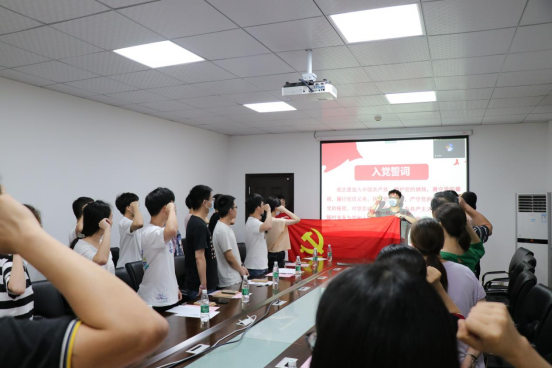 在2021届毕业生党员专题微党课上,全体党员重温入党誓词,2021届本科生党员代表杨超、张武刚和研究生党员代表任俊伟发言,他们结合党史学习教育心得,分享了自己的入党动机、逐步成长为一名坚定的共产党员的心路历程。通过线上视频连线,正处于疫情中风险区实习、不能返校参加毕业典礼的张武刚同学说:“看到一抹在黑夜中仍然鲜艳的党旗红,我心中的焦虑惶恐一扫而光。看着眼前奋斗在一线的党员志愿者和医护人员,大家携手抗疫,这是一个社区的缩影,也是全中国的缩影。我看到的是整个国家在党的坚强领导之下,所有人都朝着同一个方向努力。这样的场景在武汉上映过,现在广州也在上映。”
