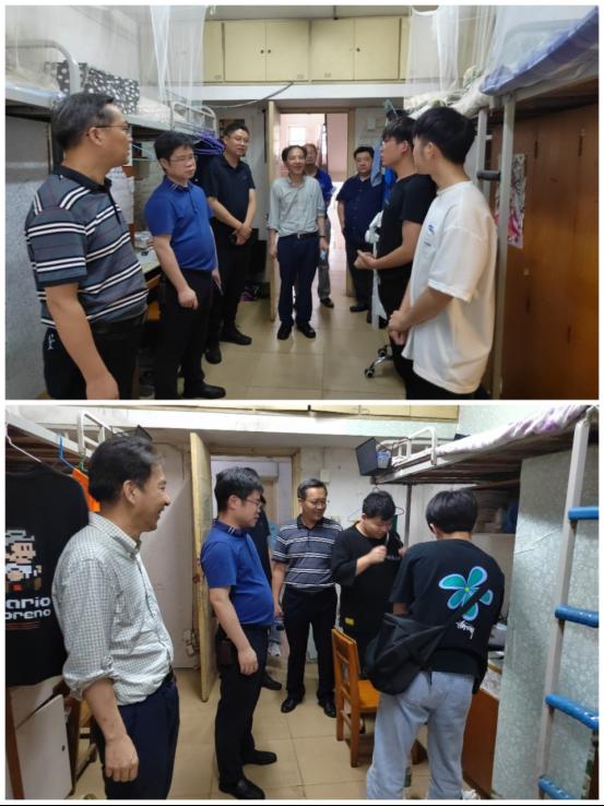 在全校持续深入推进党员干部下基层察民情解民忧暖民心实践活动之际,为深入了解暑期留校学生的学习、生活状况,切实解决学生存在的实际困难,6月24日,副校长艾青松带领计算机与信息工程学院领导班子,深入学生宿舍看望慰问了暑期留校学生,向学生们送去问候和关怀。