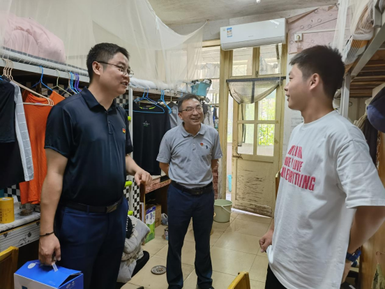 为进一步贯彻落实党员干部下基层察民情解民忧暖民心实践活动,广泛深入基层,6月29日,校党委副书记侯勇带领校党委组织部、机关党委、统战部党支部全体党员,学院部分领导班子成员、辅导员,深入学院暑期留校学生寝室,实地走访学生、察看解决问题。
