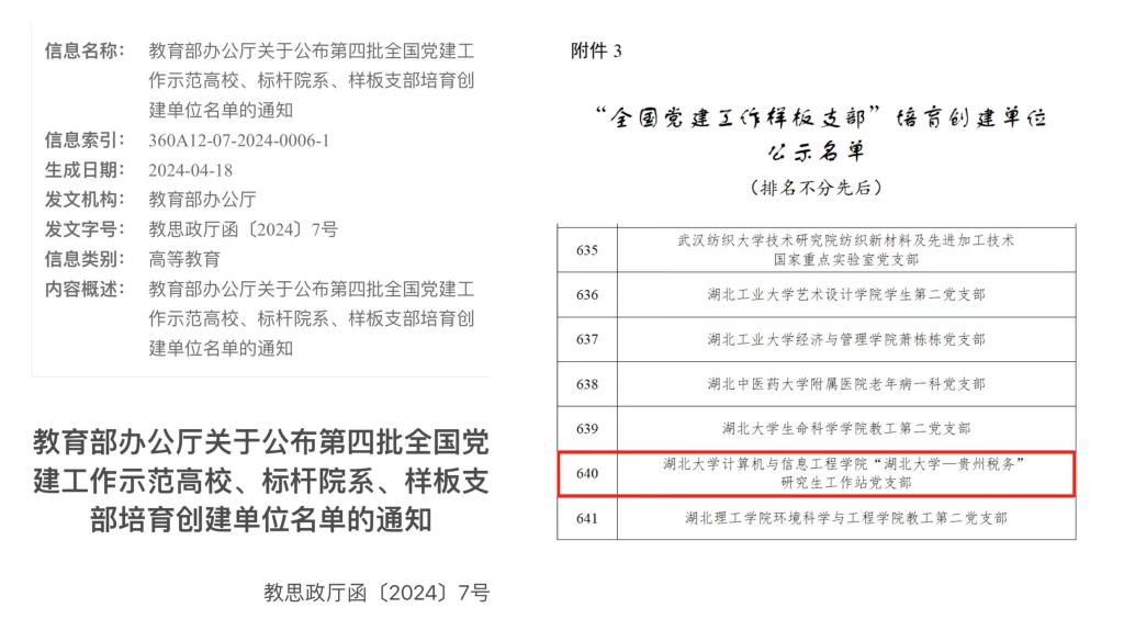 近日,教育部公布第四批新时代高校党建示范创建和质量创优工作遴选结果,学院“太阳集团古天乐-贵州税务”研究生工作站党支部顺利获批“全国党建工作样板支部”培育创建单位。
